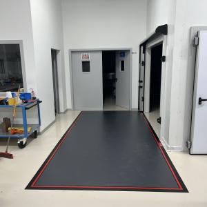 Following a refurbishment of the flooring with self-levelling resins, it was necessary to protect access to the cleanroom from contamination by particulates and particles easily conveyed by the wheels of trolleys and the shoes of the operators who had to access it.