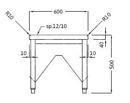 Panca centrale con portascarpe doppio Struttura in tubo di acciaio inox AISI 304 mm40×40 sp. 10/10 interamente saldata. Portascarpe doppio inclinato sui due lati saldato alla struttura. Piano di seduta in AISI 304 sp. 12/10 con rinforzo interno e tamponamento sottopiano in acciaio inox. Lati lunghi raggiati R10. Piedini di livellamento.