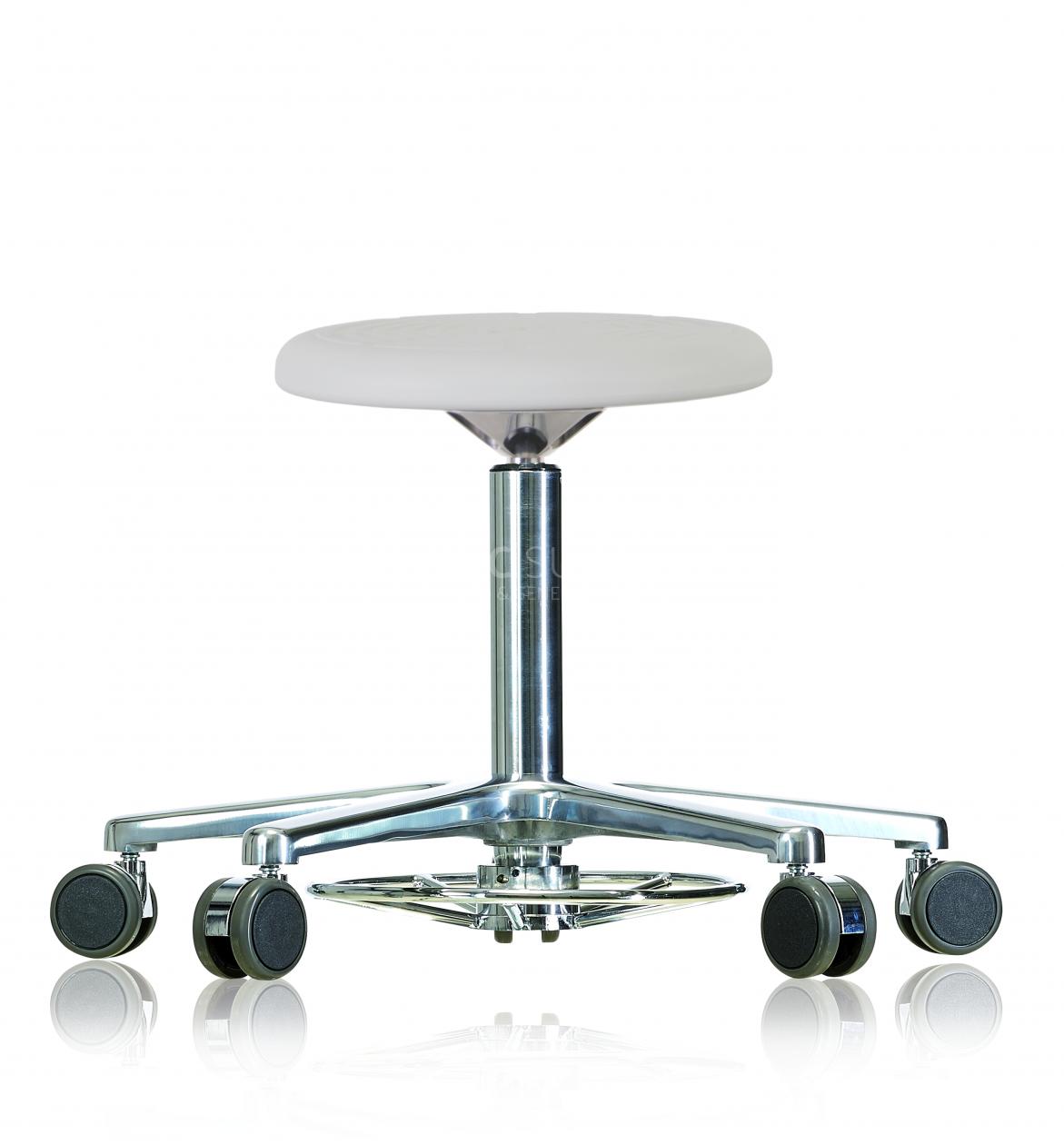 Swivel wheeled stool for critical environment, clenaroom, labs etc.., with comfortable PUR integral thermosensitive foam Dedicated to operator working aside a machinery htan need to be seat