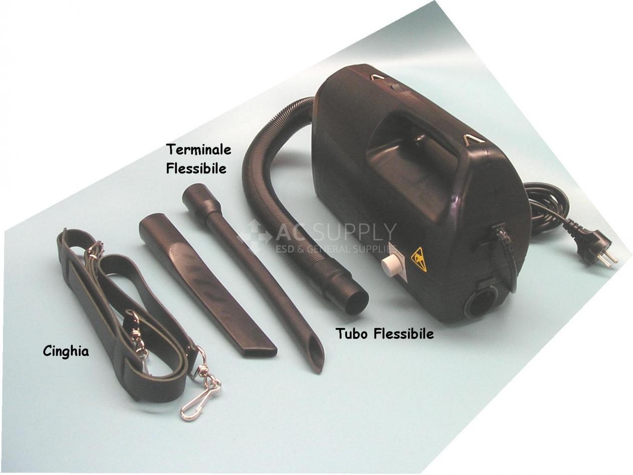 ESD vacuum cleaner / blower for EPA area and clean room enviroment. Portable, compact and lightweight unit, can be accessorized with different filters for clean application needs. Made of conductive PP is designed to fit into every corner such as assembly line , pick’n‘place etc.. Different accessories available, made of soft rubber, turn this vacuum cleaner very flexible for any different use and application in the producion or assembly line.