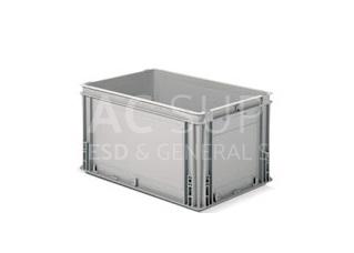 Polypropylene storage bins ( RAL 7000) for indoor and outdoor storage, handling and shipping Solid rigid and stackable with or without lid, resistand to chemical agents, solvents