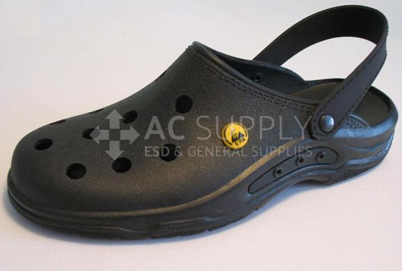 ESD clog made of moulded polyurethane. Open and back safety belt and perforated on top