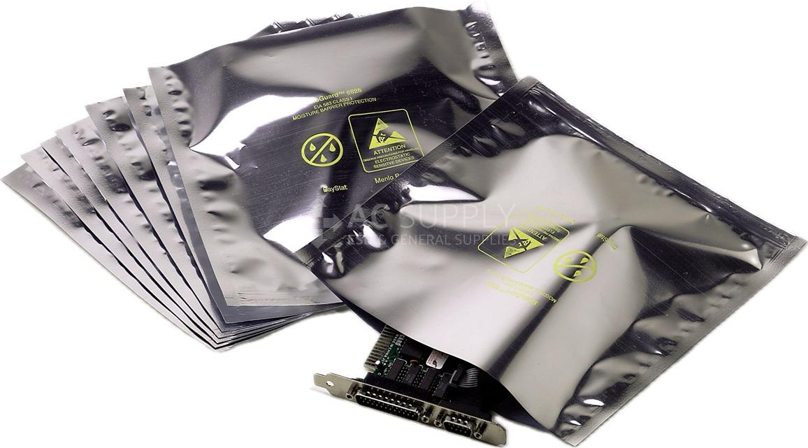 Moisture barrier bags (EMI/RFI anti-humidity) are designed for dry vacuum packaging of sensitive parts. These bags keep air, moisture and oxigen out for longer periods provideing at the same time an effective shielding against statics, RFI and EMI interferences (meet MIL B 81705-C). Dessicant salts to eliminate residual humidity and numidity indicator cards are the typical accessories for this packaging.