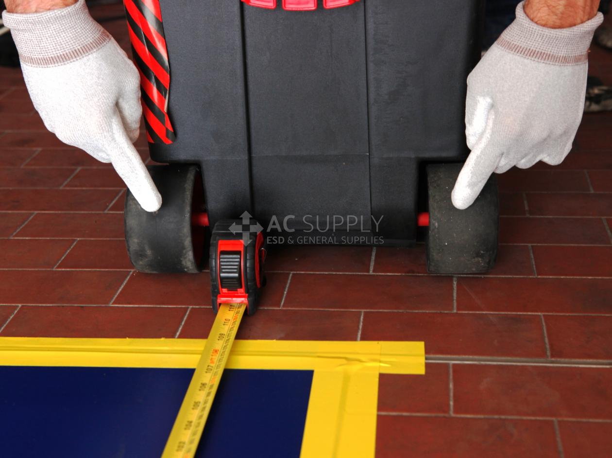 In queste foto si vedono le fasi di azione della pulizia di una rotella che scorre sul tappeto decontaminante.