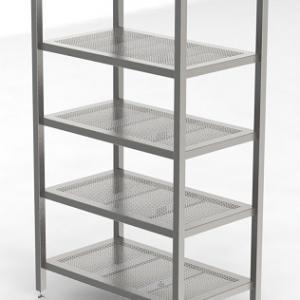 Scaffalatura in acciaio inossidabile per camera bianca. Ripiani lisci o forati.