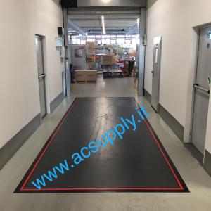 La maggior lunghezza del tappeto permette alle ruote dei carrelli di fare almeno 3 giri completi, così come agli operatori di fare un maggior numero di passi consecutivi (minimo suggerito 6), riducendo di fatto la contaminazione veicolata.